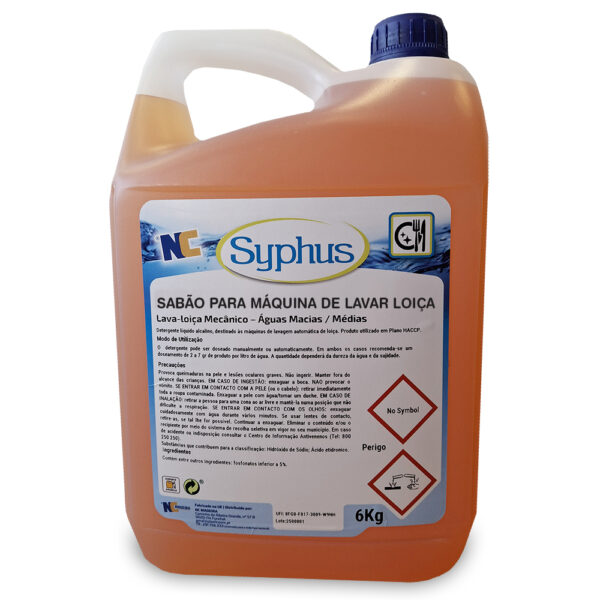 Detergente líquido alcalino, destinado às máquinas de lavagem automática de loiça.